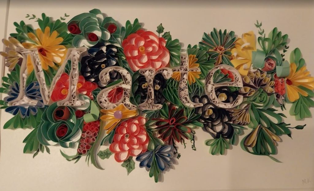 Gelukt, een project waar ik aan begonnen was voor ik halsoverkop het ziekenhuis in ging is klaar. Het is een eerste kennismaking met papierbloemen vouwen. Ik heb de naam van mijn schoondochter er in verwerkt. Een beetje te laat voor haar verjaardag, maar het is me gelukt om er iets aardigs en kleurrijks van te maken.